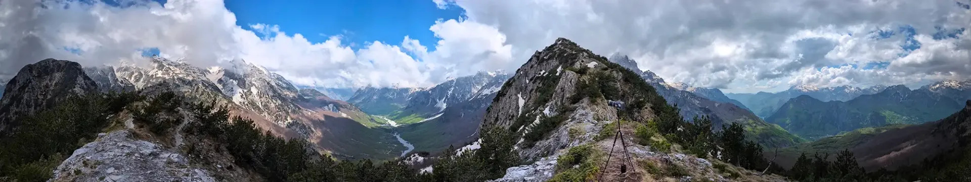 V okolí se fakt jeden nenudí, zážitků je požehnaně. Všechno by to bylo na cestopis, mezi vším však kromě setkání se Zmijí růžkatou (Vipera ammodytes) a nalezení točeného Budvaru, vyčnívá Qafa e Valbonës, Valbonský průsmyk. Skrze ten se dá přes léto projít do údolí Valbony a dál do ještě více odlehlých končin, kde vás kousne liška. Nad průsmykem jsou skalnaté vyvýšeniny, ze kterých je spektakulární rozhled na údolí a mračné hory po stranách. V době naší návštěvy je však stále v pasu a údolí sníh a cesta skrz je znemožněna.